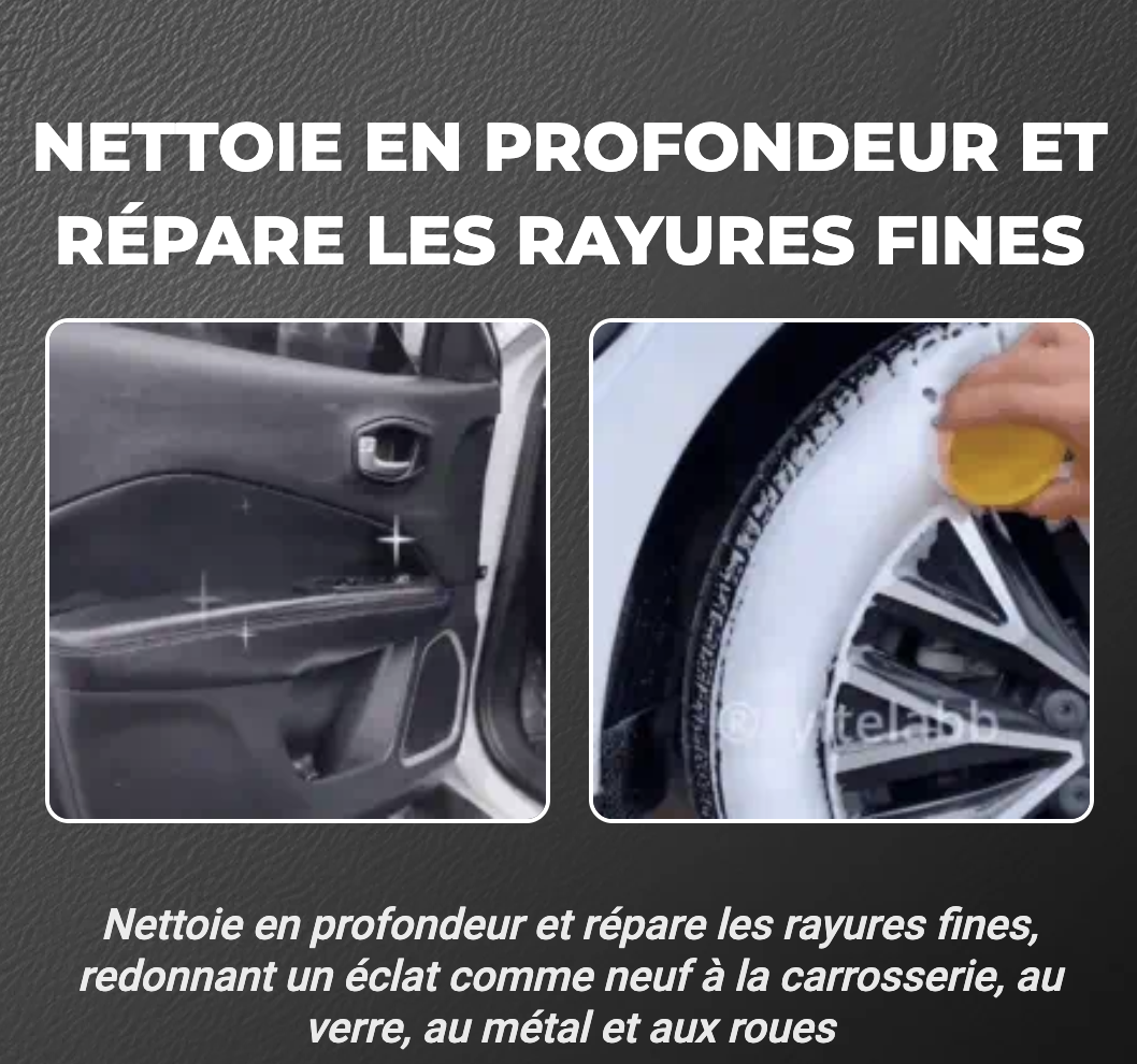 🧼 Pulvérisez directement sur la surface à traiter (plastique, tissu, cuir, tableau de bord, etc.) .