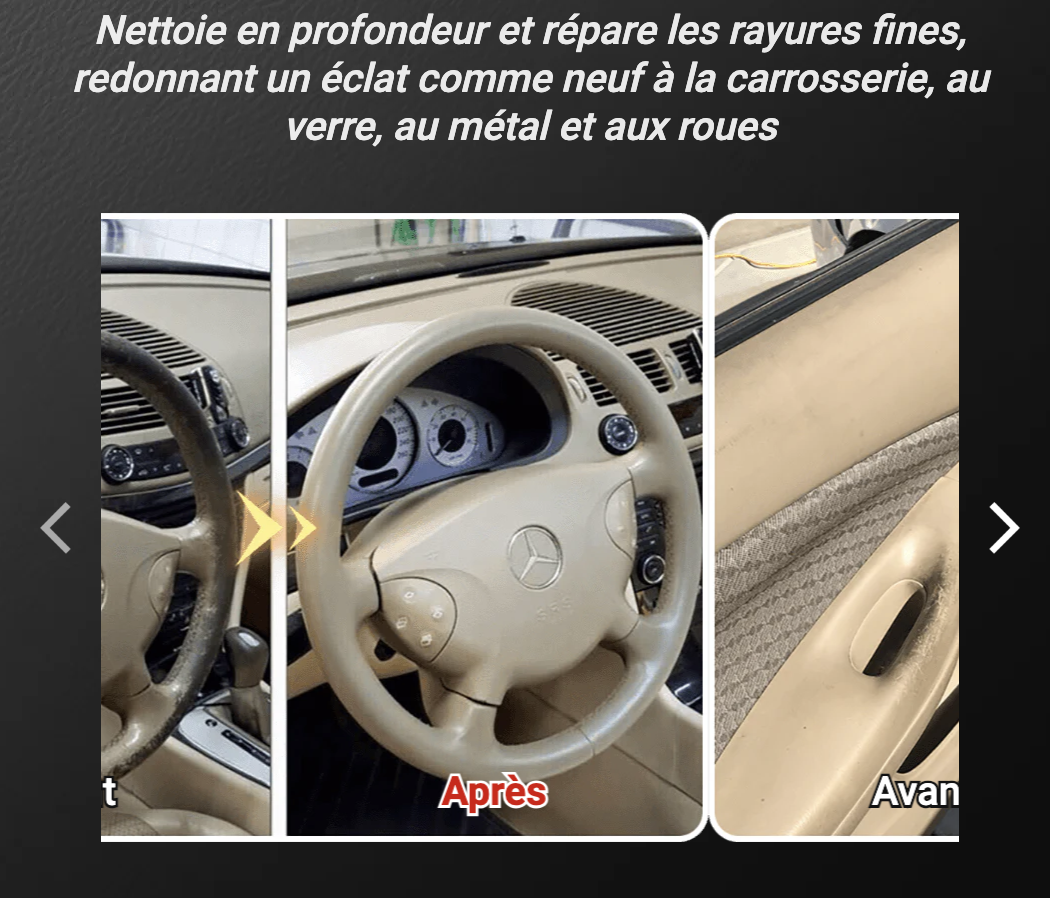 Nettoyez, ravivez et protégez l’intérieur de votre voiture en quelques pulvérisations. Ce spray tout-en-un est l’allié idéal pour un entretien rapide, sans eau, et sans effort.